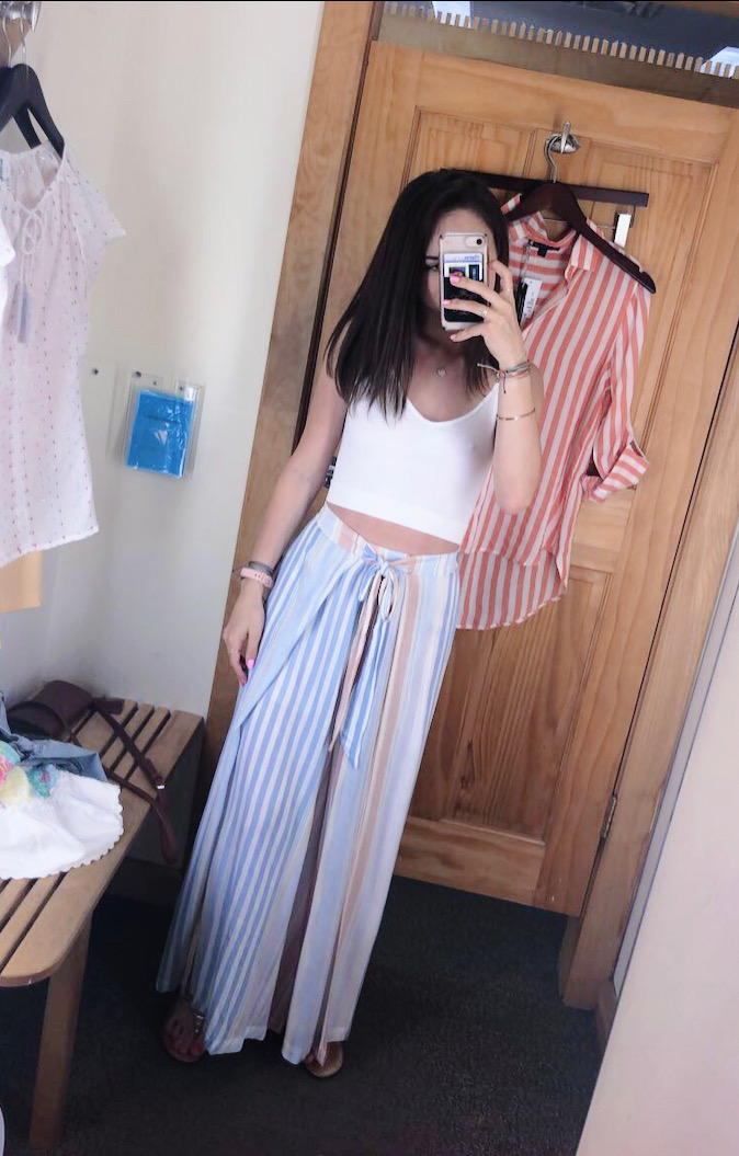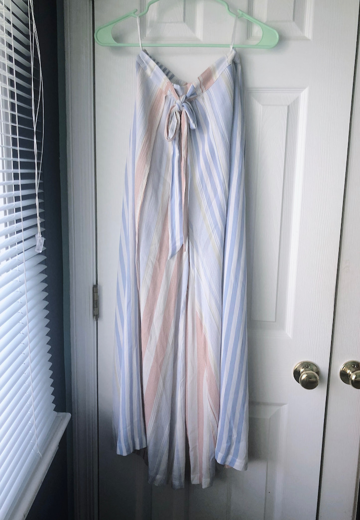I am in LOVE with these pants — and the 1970’s vibes that they’re giving me. Basically, it’s a pair of shorts underneath a couple long pieces of fabric, making it look like a maxi skirt kinda situation. I can imagine wearing this with flat sandals on the beach or with espadrille heels to a nice dinner. AKA you can dress it up or dress it down!