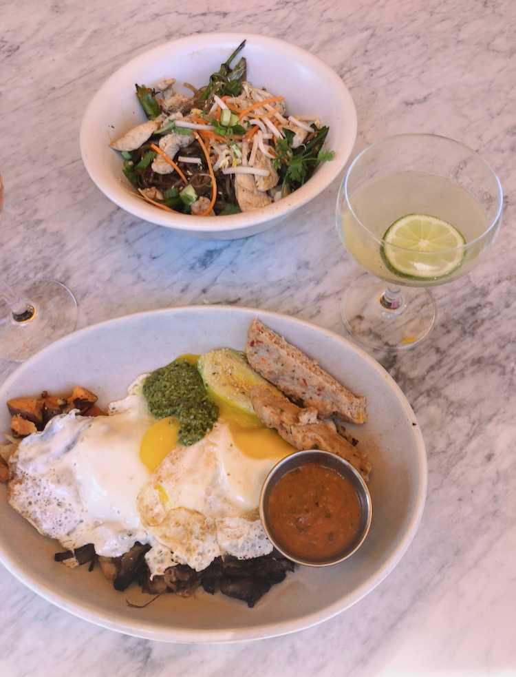 My mom got the Korean Noodle Bowl with chicken (pictured, on top) and I got the Sunrise Bowl with chicken sausage (pictured, on bottom). Both were amazing and I would definitely order again. Yum yum yum yum yum.